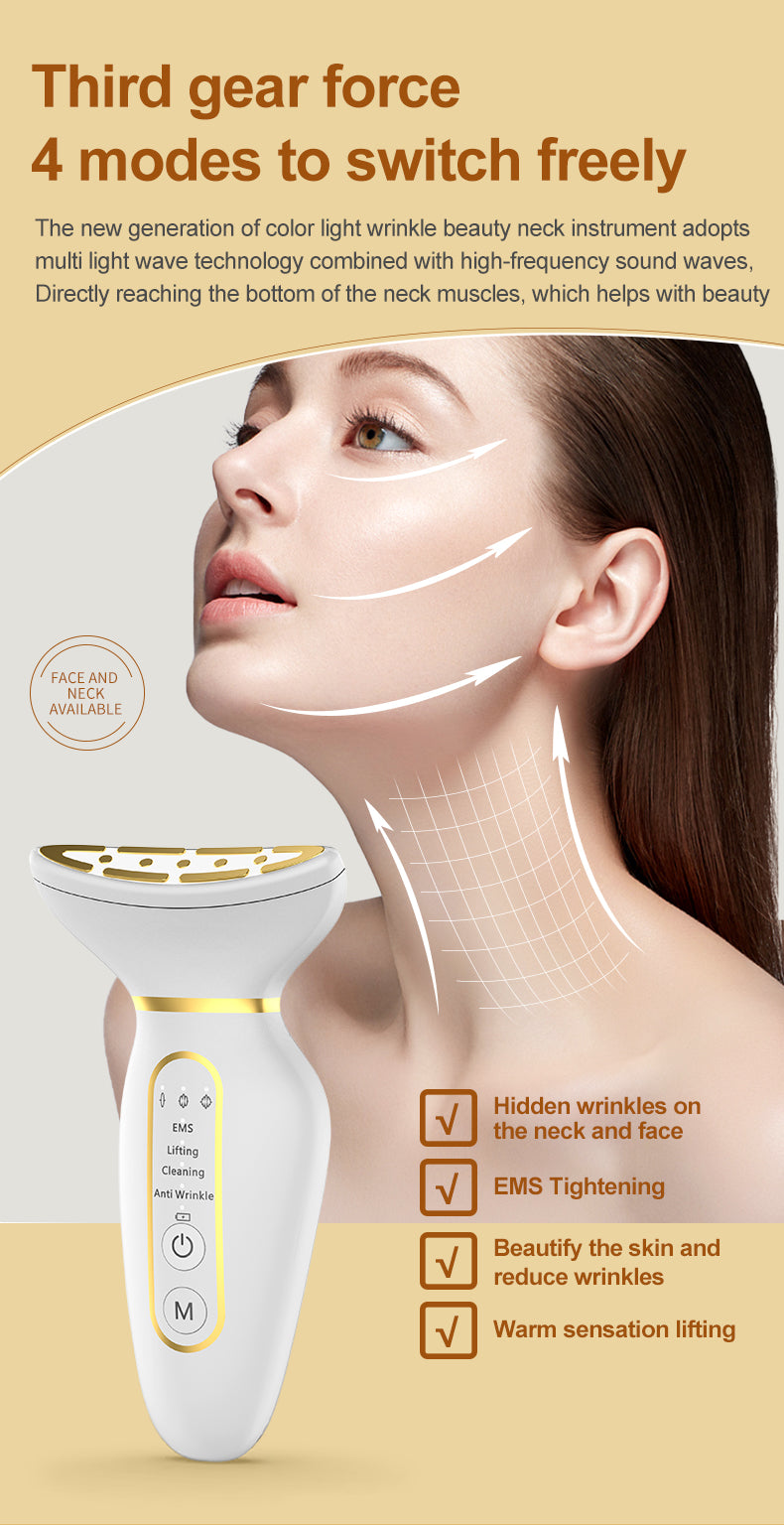 Skin Care Routine at Home Neck Face Massager Sculpting Tool Skin Rejuvenation Device with Thermal Triple Action LED Vibration